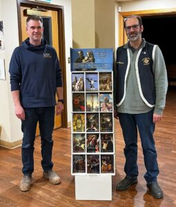 KofC Grand Knight Adam MacDonald (left) and KofC Treasurer Terry Richardson pose with donated bookstand and religious booklets in the Church Foyer.
